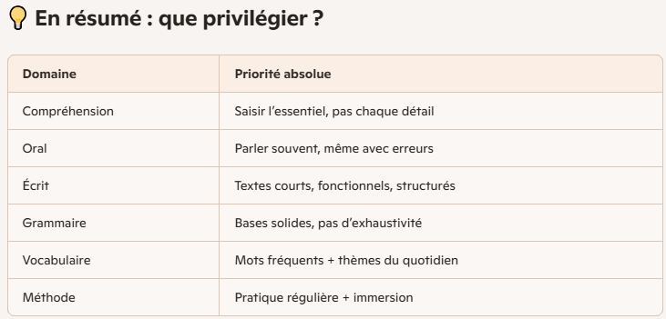 Avec la sympathique collaboration de Copilot: Réponse à la question**:** Que privilégier quand on veut atteindre le niveau “x” d’une langue?