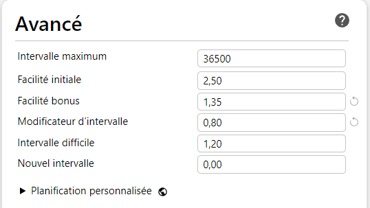 j’ai augmenté Facilité initiale à 2.5 au lieu de 2
