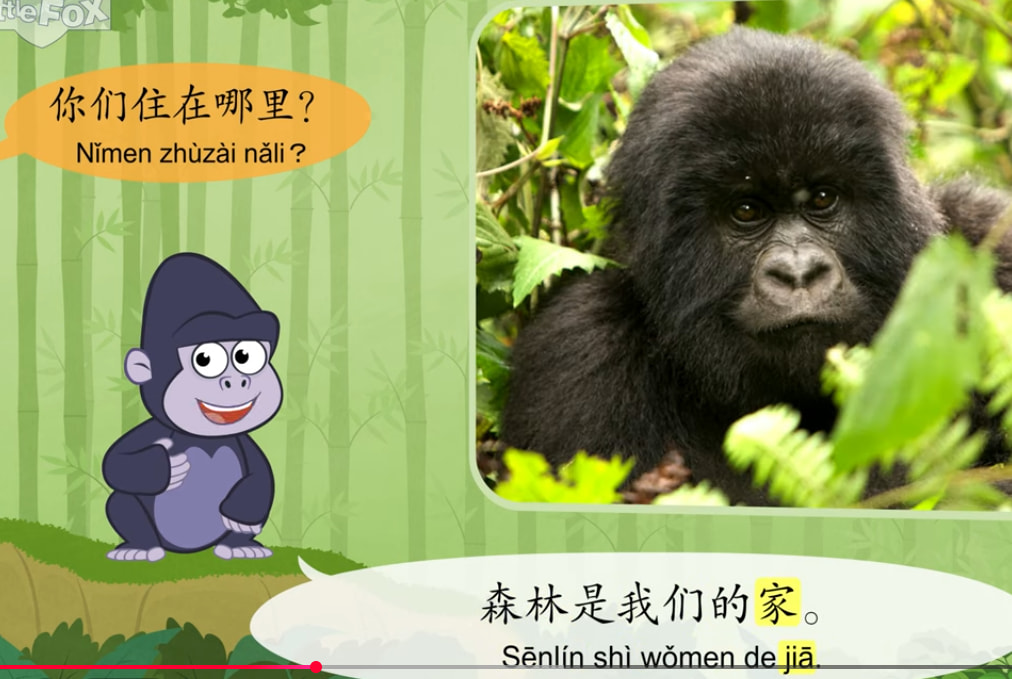 Et pour avoir juste regardez en diagonale l’épisode dans la jungle, les situations sont bien décrites, les sous titres en mandarin sont toujours présents. Vocabulaire de base permet de bien suivre la construction des phrases. Le débit vocal est modéré, mais pas lent.