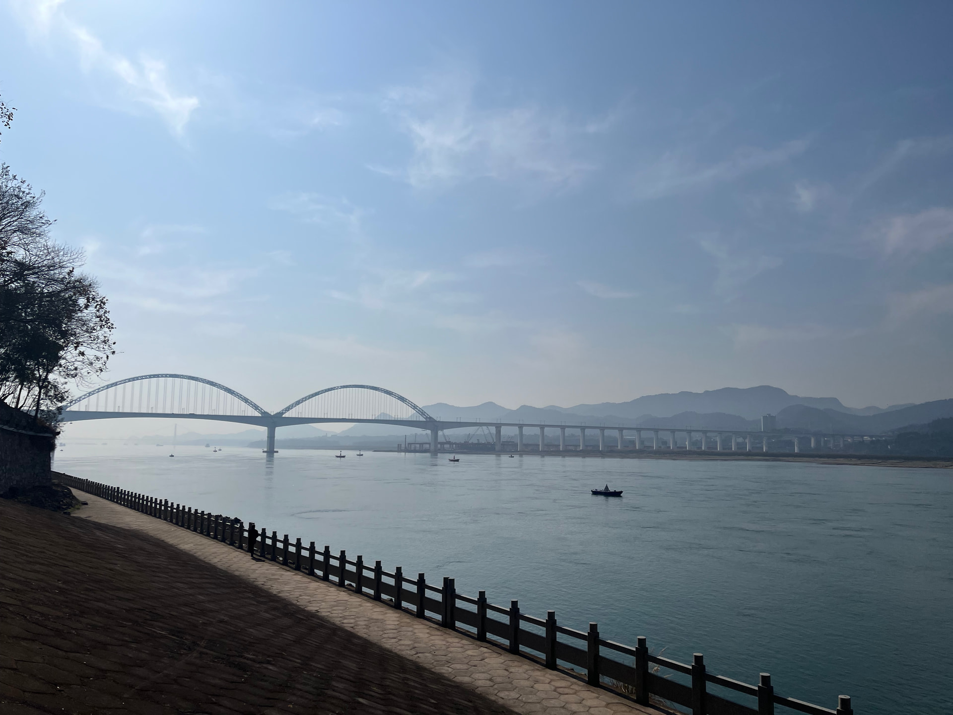 Alors, je commencerai par partager une photo de ce matin au bord du fleuve 长江, qui rythme la vie des habitants du coin.. ![]()